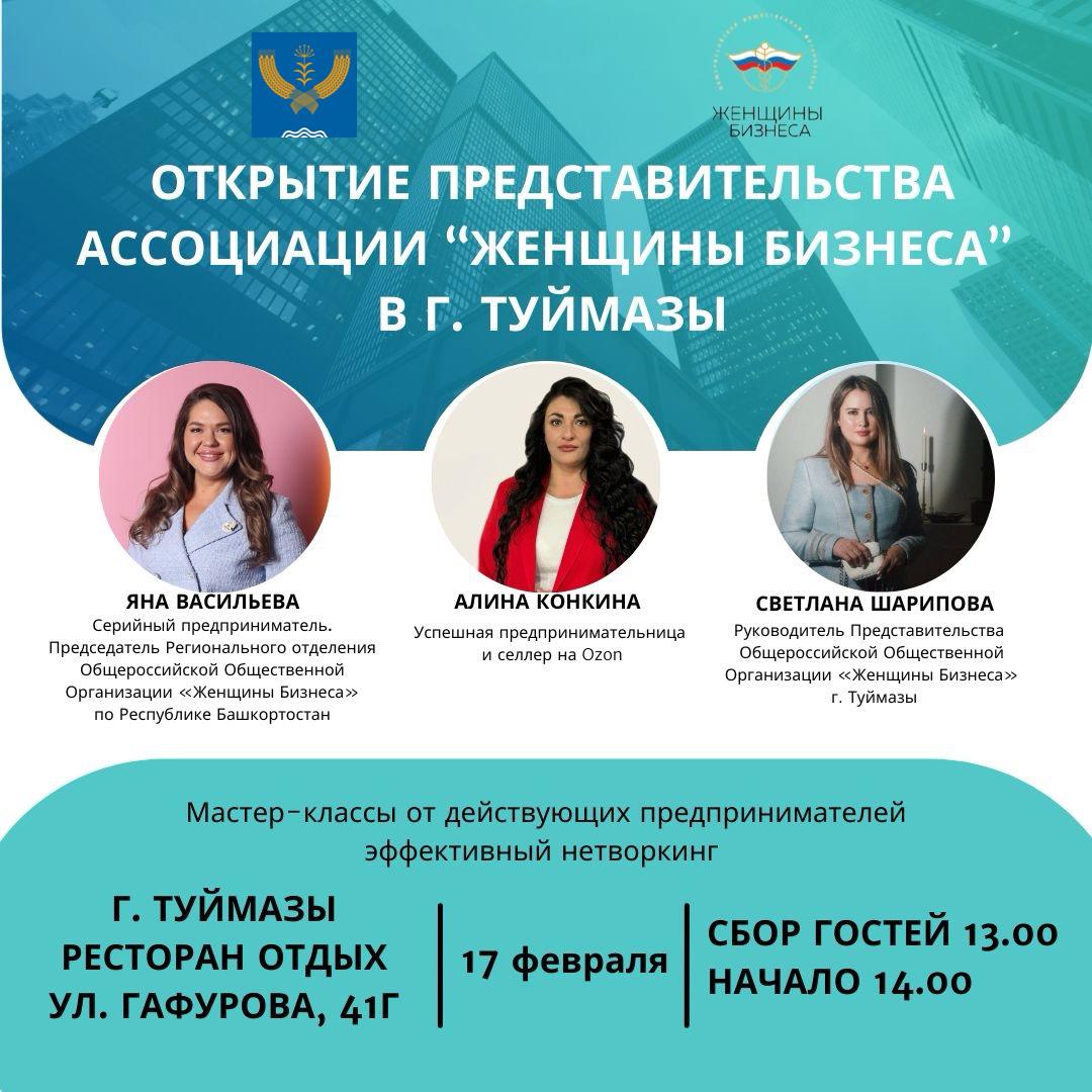 17 февраля 2024 г. мы открываем Представительство Ассоциации «Женщины бизнеса» в г. Туймазы